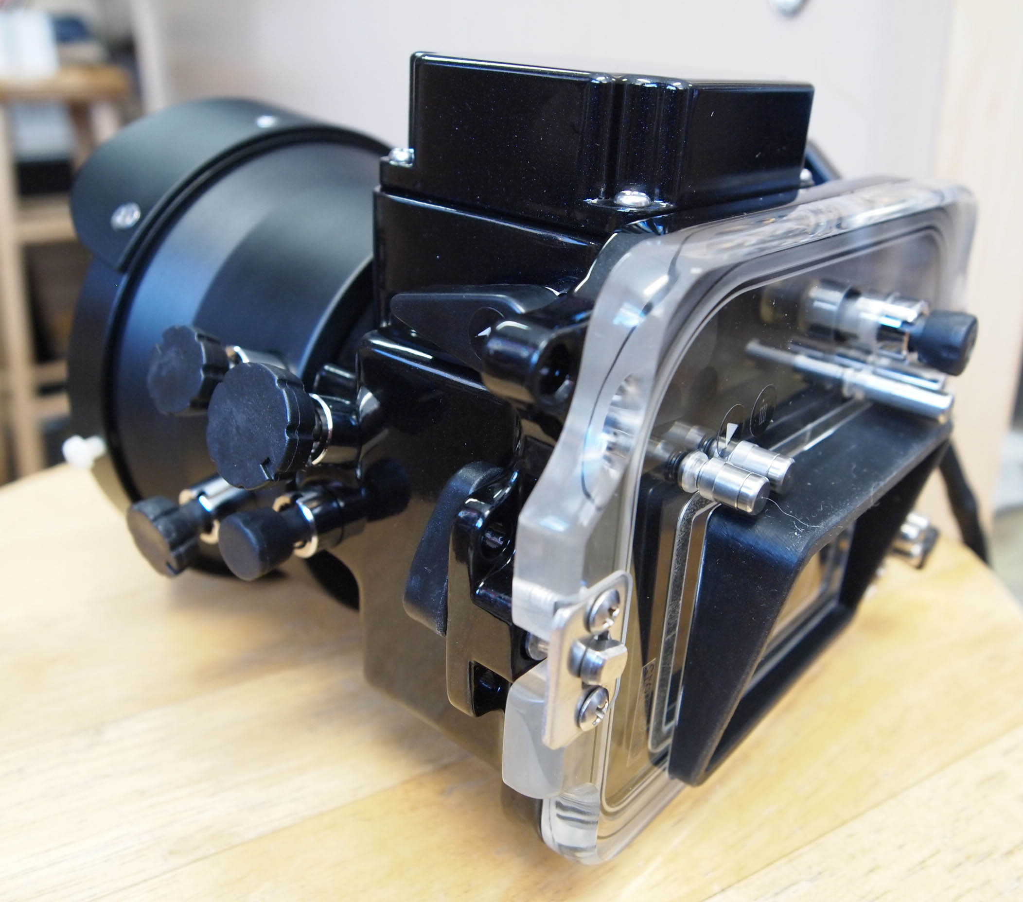 All the housings offer full camera functionality and interchangeable ports for the mirrorless cameras with interchangeable lenses. Fiber optic slave ttl is available for every housing, and several even include electrical sync cord abilities.
