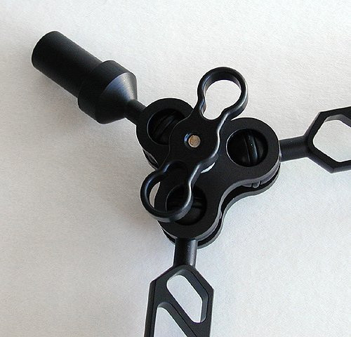 The AC-TCS Ultralight triple clamp allows you to attach two Ultralight arms, along with the remote TTL Slave Adaptor, Ikelite EV Controller, or any Focus Light, at the same location. Often used with the AD-TTL Ikelite Adapter.