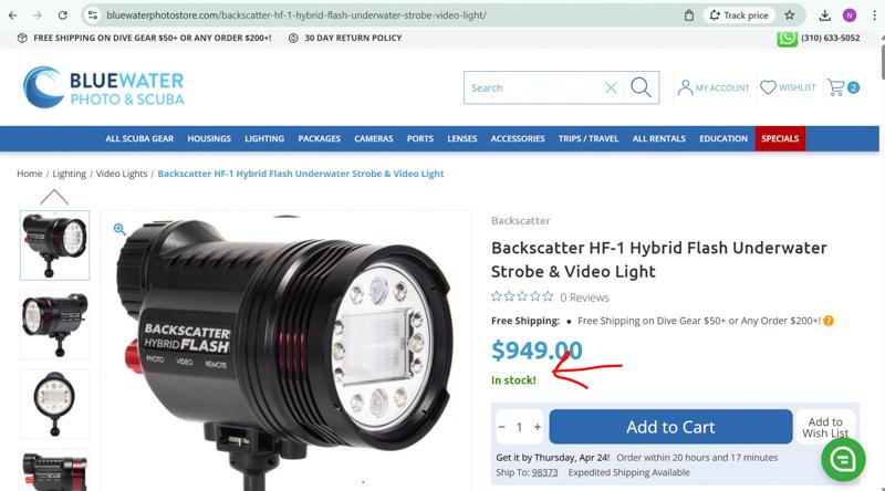 Unfortunately for us all, underwater photography, and even scuba diving, is a very niche hobby. This means that you have many fewer participants and economies of scale (i.e., lower prices) become difficult. Even though the price of underwater housings is surprisingly high to many buyers, underwater photo and scuba retailers, like Bluewater Photo & Scuba, tend to receive very small margins from the manufacturers. And even the manufacturers work on small margins! What this means is that our industry cannot absorb the cost of tariffs. For most brands, we anticipate retail prices to rise in the next few weeks. We've already received that confirmation from SeaLife, Backscatter strobes and flashes, and Shearwater.