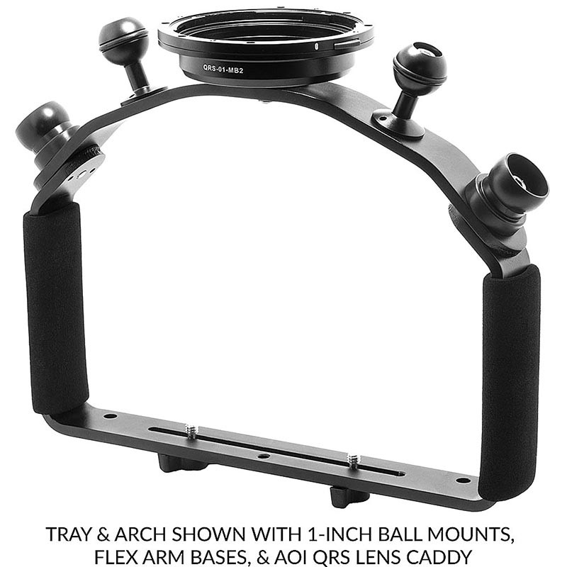 AOI Quick Release System 01 Mount Base for Backscatter Arch Plate or Ultralight Arms. This quick-release system allows you to mount a wet lens on the arch as a safe storage area until required.