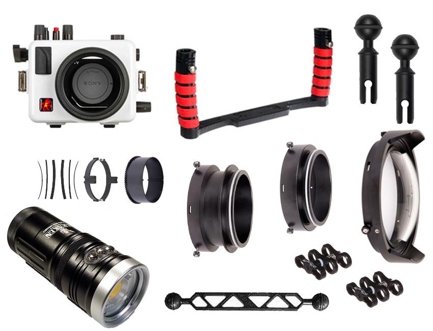 The Bluewater Ikelite Canon R7 Underwater Housing & Video Light Package comes with everything you need to get going in underwater videography! This set up is for wide angle shooting (optimised for the Canon 16-35 mm f/4 EF IS USM lens), this kit is perfect for shooting video of reefscapes, wrecks, sharks. The housing and tray is also scaleable, allowing you to add to it in the future, as well as add underwater strobes and take still photographs. The package includes the latest in Mirrorless camera technology, together with the latest to market underwater video lights, and accessories to mount strobes and focus correctly underwater.