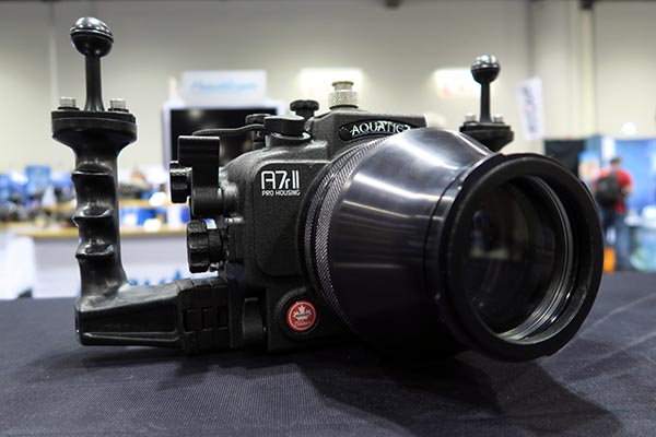 Just before DEMA began Aquatica announced their newest housing, the Sony A7r II, and we got the first preview of this new housing this week. The Aquatica housing stands out with its unique rear dial control, fully mimicking the control dial on the back of the camera. In addition, Aquatica showed off its new slim macro port which includes built in threads for a macro diopter.Â