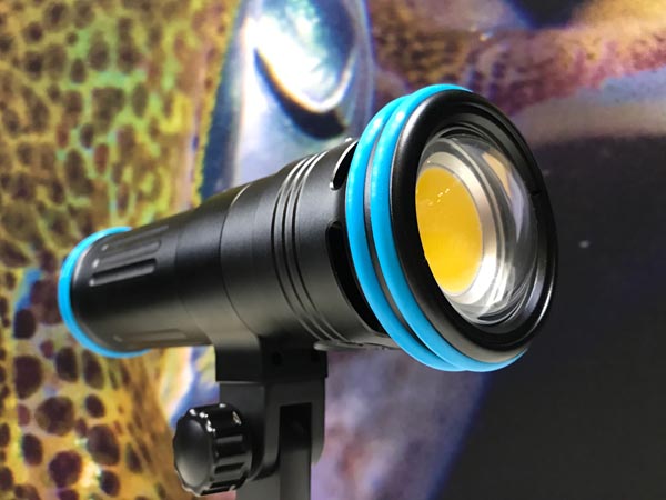 Big Blue continues to add to its product line of over 40 different models of lights and this year they upgraded a number of models with more lumens but kept the price the same. Who doesn’t like extra free lumens! The new light that we really liked that they introduced is the VL4000P that has their signature easy to use controls for four different power settings and an essential red mode for those skittish subjects like mandarinfish.