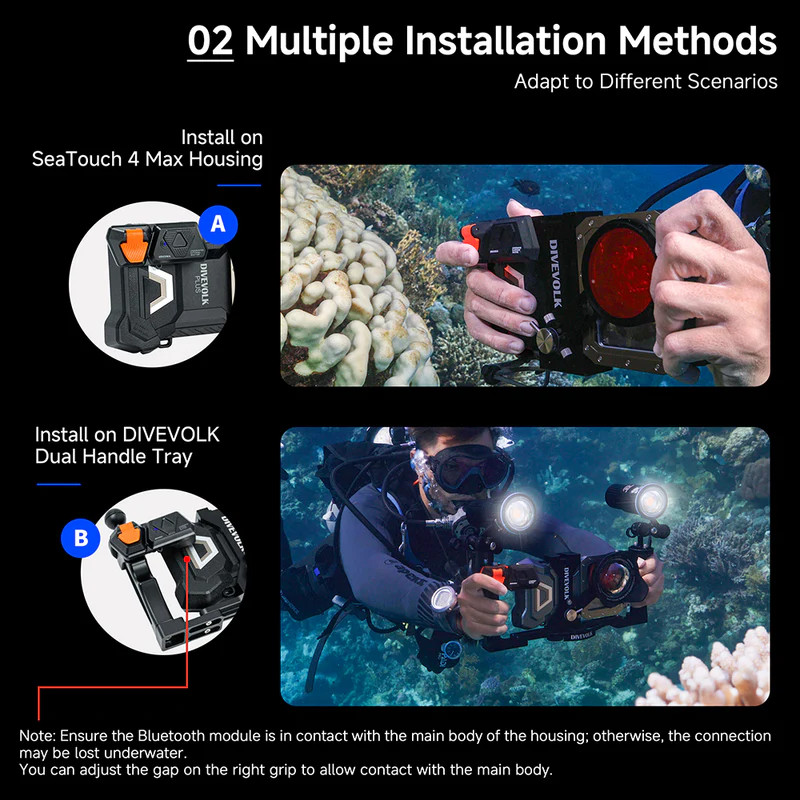 This add-on for the SeaTouch 4 Max smartphone housing introduces a camera-style shutter button, enhancing the housing’s full touchscreen functionality. Designed for comfort and ease of use, it mimics the feel of a classic point-and-shoot camera, delivering greater stability and control when capturing sharp, high-quality underwater photos and videos.