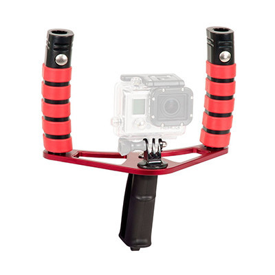 Ikelite Steady Tray for GoPro Kit with Handles features 3 configurations (pistol grip, single handle or dual handle ) which is the most versitile GoPro tray in the market to date.   Each handle can easily be added or removed with a screwdriver for travel or to change your set-up in between dives. Left and right-hand quick release handles provide a soft, over-molded grip and attachment points for lighting accessories. A bottom-mounted pistol grip is perfect for in-motion, action video.