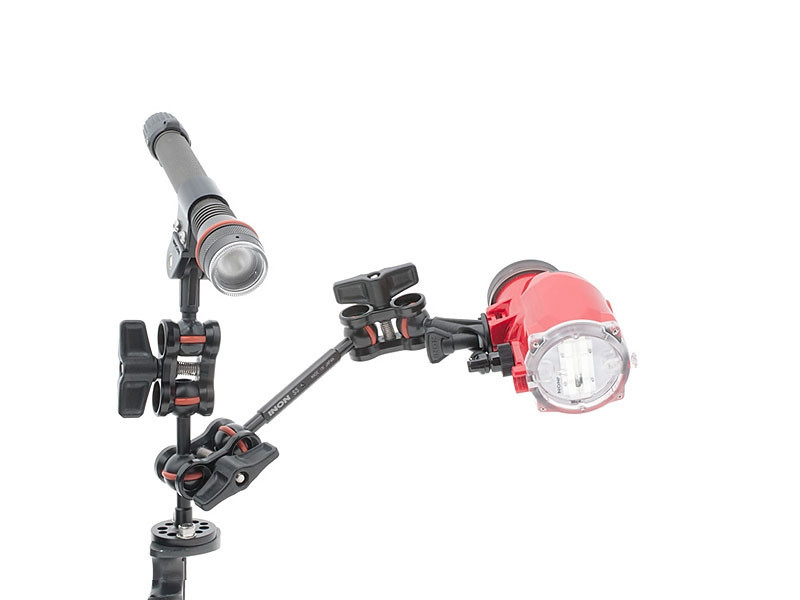 One essential component for attaching to an arm system is the Direct Base III. either directly on the Grip Base D4 or Grip Base M1 or D Holder or SD Front Mask for HERO5/6/7 or Weight Plate, or alternatively via an optional M6 Plate Direct Base III or M5 Plate Direct Base III on a housing or other base items. The Direct Base III can alternatively be connected to the Stick Arm or Multi Ball Arm in the middle using an optional M6 Joint. On a strobe, the Direct Base III is also mounted. Its metal ball-joint allows for rigid strobe positioning with just a light grip of the Clamp III.
