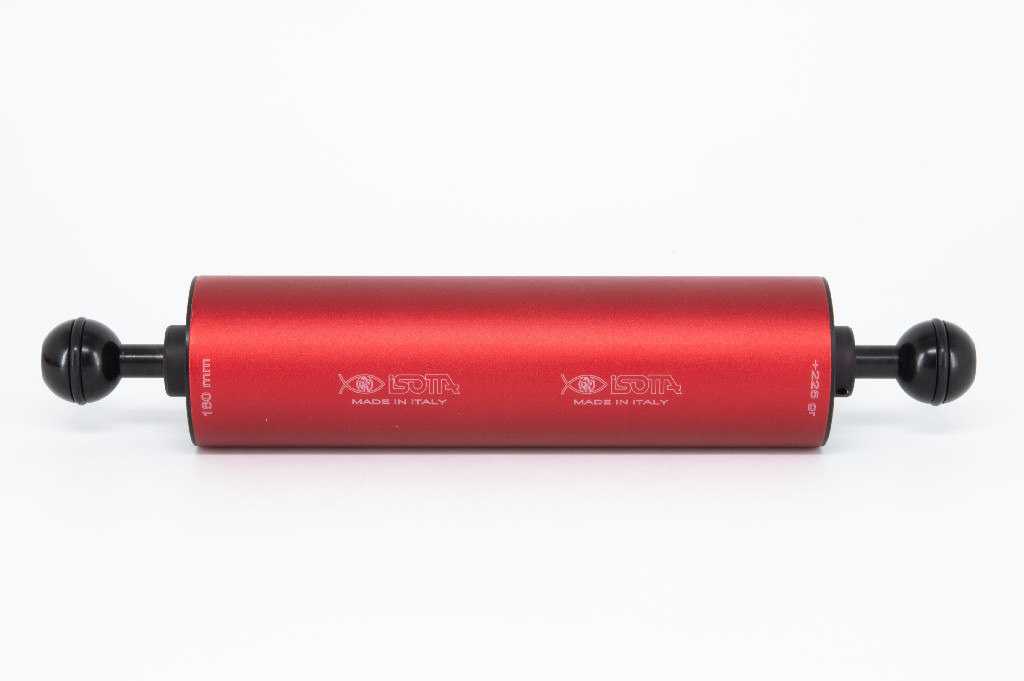 A heavy camera system is something that every underwater photographer dreads. They can be cumbersome, tiresome, and difficult to maneuver. The Isotta Double Ball Float Arms 50mm Diameter serves as both an arm and provides ample lift for your underwater rig. The float arms are built from anodized aluminum which makes it durable, and ball mounts on each end has an o-ring for better grip.
