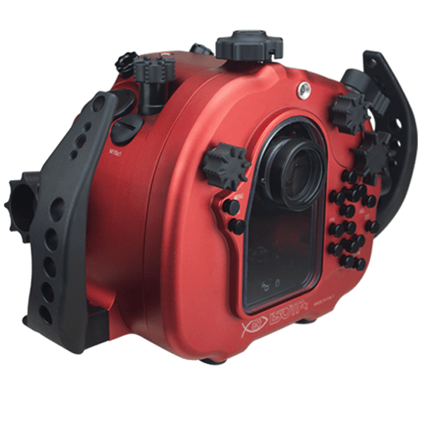 When you’re housing a camera like the Sony A1, the priorities are clear: absolute sealing confidence, direct control fidelity, and a system that won’t slow you down once you’re on the boat. This Isotta underwater housing is built around those realities. The red anodized aluminum body isn’t just cosmetic—it’s a durable, corrosion-resistant shell designed for repeat professional use, with clearly engraved aluminum buttons and dials that mirror the camera’s own control layout. In practice, that means muscle memory carries over underwater, even when wearing gloves.