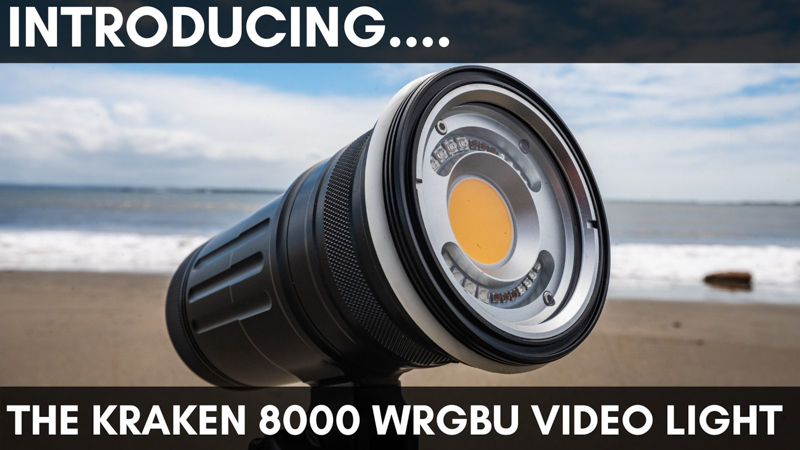 The Kraken Hydra 8000 WRGBU is the newest and most exciting light in Kraken's hydra line-up. For a very affordable price of $799 (additional 20% off this memorial day!), this light outputs 8000 lumens of light with a 100 degree, 5000K beam (CRI of 90). The Kraken 8000 WRGBU is equipped with way more features than your traditional video light. It can shoot a 10,000 lumen burst for photography with a fiberoptic cable, and it has an additional red, green, blue, purple, RGB, and an auto RGB beam. The RGB is perfect for creative photography and video. The blue light is great for fluorescent video with the option to output a 10,000 lumen blue light burst for fluorescent photography!