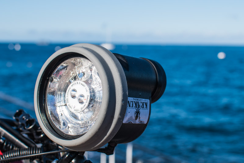 The highlight of this strobe is the battery life, with over 900 full cycles on a full charge! This is in part because the KR-S02 is more of a mid-range strobe when it comes to power. It has a guide number of 24 – which is powerful, but not at the highest end of the market (closer to 33 or even 64). It is certainly more than capable for macro photography and most types of wide-angle photography. The strobe features a 200 lumen white and red spot light which is great for focusing. The beam is 90 degrees with a color temperature of 5000K. Finally, the KR-S02 will be even more versatile in the future as Kraken is planning on developing diffuser and snoot accessories. So, on paper, the KR-S02 is a very promising piece of equipment. But paper isn’t why people by strobes - We took it diving in the cold waters of Catalina Island, California to put it to the test and see just what it could do. The KR-S02 strobe has proven to be a valuable tool for underwater imaging with a few features that has set it apart when compared to other strobes on the market.