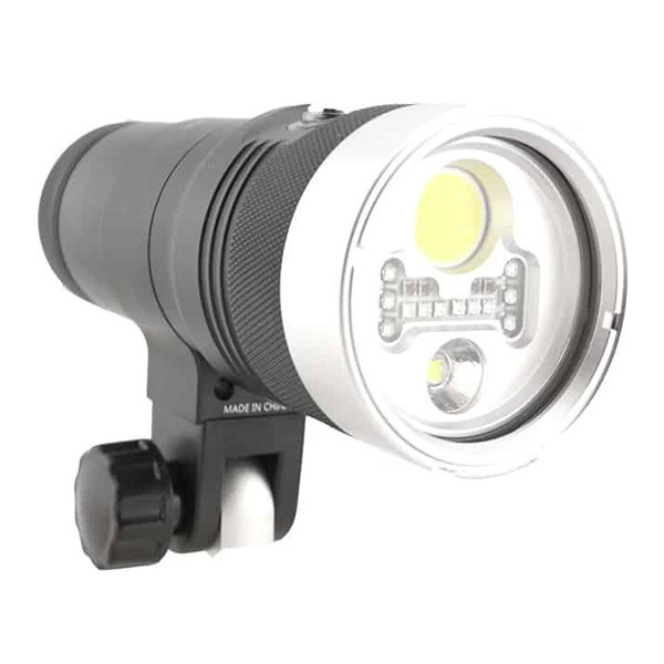 The updated Hydra 3500S+ WRSU RGB now features an incredibly bright 4500 Lumen Strobe Burst Mode as well as an RGB mode with 9 different color options for creative lighting. When connected to your housing with a fiber optic cable the light will burst in time with your photo in order to offer a strobe like flash to help better illuminate a still photo.