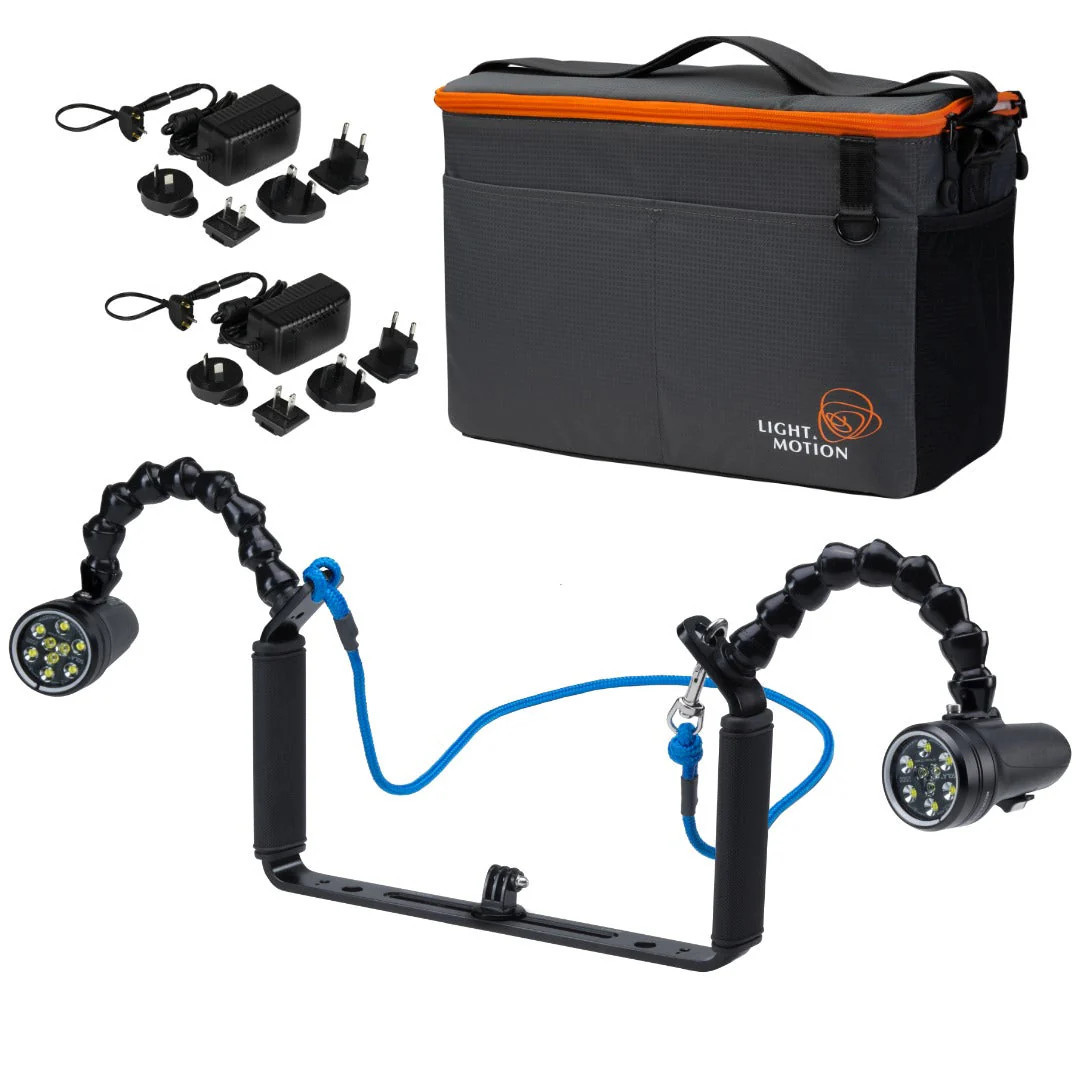 For small and mirrorless camera systems, the 12" Camera Tray Complete Wide-angle Photographer Kit offers a steady lighting platform to enhance your underwater photos.