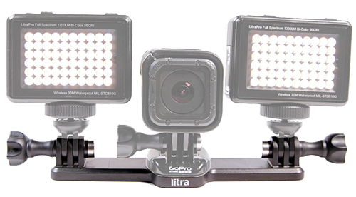 The LITRA Triple Mount allows you to attach a GoPro and 2 lights in one mount. The Triple Mount can be mounted to any tripod or other universal 1/4 20 systems.Â