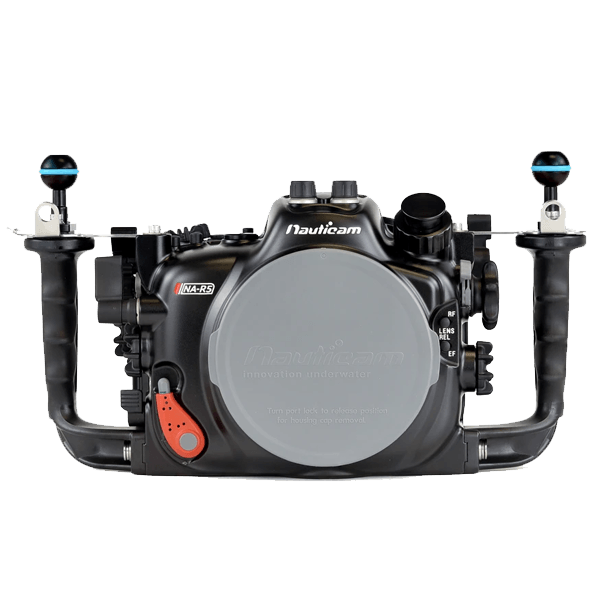 The housing features Nauticam's signature port locking system. Ports can be easily installed and securely locked in place. It's just the press of a button and the turn of a lever! The NA-R5 will support both RF and EF mount lenses through the N120 Port System.