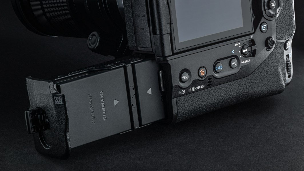 The vertical grip truly does make it feel more secure when holding the camera and prevents your hand from getting tired thanks to a deep finger rest. Because of this you can shoot for hours without feeling the need for a tripod, making this a great camera for professional sports and action photography. The E-M1X is arguably the best feeling mirrorless camera on the market and feels like the best of Canon and Nikon DSLRs in a single camera. The ergonomics of the vertical grip are also not to be understated. The vertical grip allows you to flip the camera to portrait mode with the shutter and settings dials located in the same, natural feeling location. This would be a highly favorable feature for the portrait or wedding photographer. Not to worry, there is also a C-lock switch on the grip that disables the portrait mode shutter and dials so that you don't accidentally hit these functions with you palm when shooting normally. Furthermore, the vertical grip houses 2 of Olympics’ batteries, which doubles the battery life of it's predecessor, the E-M1 MkII.