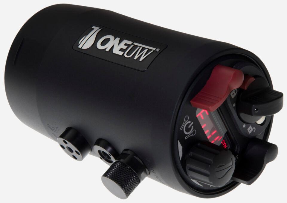 The ONEUW One 160X MkII offers full interface capabilities, without any limitation on use. It is equipped with both an S6 type synchro cable socket and a Sea&Sea; type fiber-optic cable socket. Moreover, an optical receiver is located on the front reflector for slave flash mode.