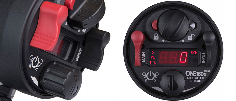 The ONEUW One 160X MkII offers multiple shooting modes, including Nikon, Canon, Sony digital TTL, s-TTL, film TTL, and manual. It provides energy control in manual mode at ½ f-stop increments over a range of -6 and exposure compensation in TTL mode at â…“ f-stop increments over a range of +/-2.