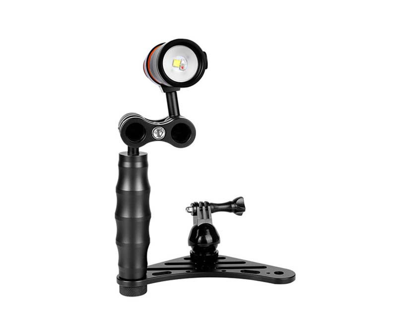 The Orcatorch D710V Video light stands out from the crowd with its innovative tri-color lighting system. This video light seamlessly combines three distinct light sources - neutral white, red, and violet - into a single, compact unit. This all-in-one design eliminates the need to carry multiple lights for different photographic purposes, streamlining your diving gear and saving valuable space, while also being perfect for professional GoPro underwater video shooters.