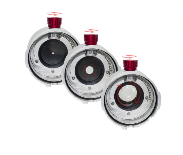 The SUPE OSD (optical shaping device) sets itself apart from other snoots with its unique approach to modifying the beam of light. Rather than relying on conventional masks, it incorporates an ingenious built-in aperture system, offering a selection of eight different aperture sizes. Whether you desire a narrow beam or a wider one, achieving your desired effect is as simple as adjusting the aperture using a convenient knob located on the OSD's side.