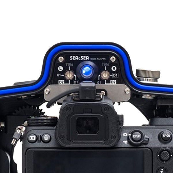 The housing allows you to utilize the Sea & Sea YS Converter to fire the strobes using fiber optic cables. The YS Converter translates the cameras TTL signal to LED light.