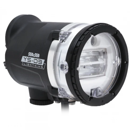 The Sea & Sea YS-D3 is one of the world's best strobes for underwater photography. It offers lots of great improvements from it predecessor, the YS-D2J, including quicker recycling times, a more even beam, a redesigned back display, and a more powerful targeting light. The YS-D3's circuitry has been improved and the strobe is capable of a powerful, professional guide number of 33 (land). At guide number 22, the YS-D3's recycling time is a mere 0.6 seconds and at guide number 16, there is virtually no recycle time! This kind of capability is very beneficial to underwater photographers that need to shoot quick subjects with burst modes on their camera.