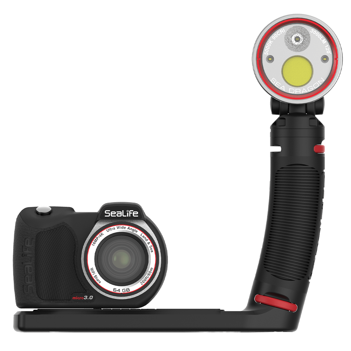 The SeaLife Micro 3.0 Pro Dual Beam is your perfect compact camera package, the set comes with the Micro 3.0 Camera and Sea Dragon 3000SF Dual Beam Video Light. The SeaLife Micro 3.0 Camera is packed with numerous awesome features such as it has been designed to be permanently sealed for a lifelong worry-free dives. No need to do o-ring maintenance, thinking of leaking and flooding. Battery life is wonderful, it can be operated for more than 3 hours which is great for a full day diving. Operation of the camera is so easy with its three wide Piano key type buttons that are easy to locate and control even while wearing thick gloves. The camera is also equipped with the "Easy Setup" feature that quickly guides you through the correct settings based on the shooting environment, depth and lighting accessories being used
