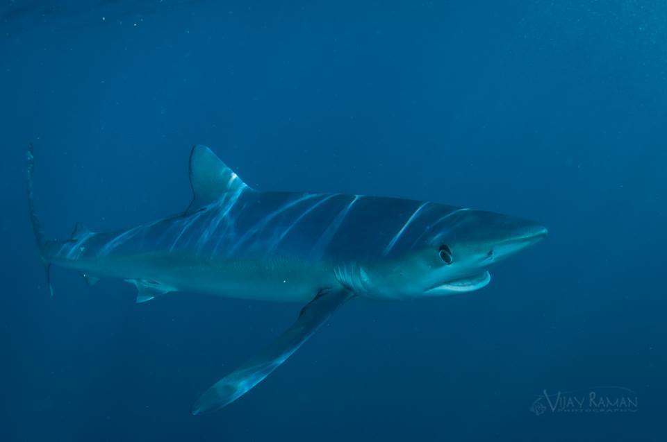 A blue shark in open water. Photo: Vijay Raman, Nikon D90