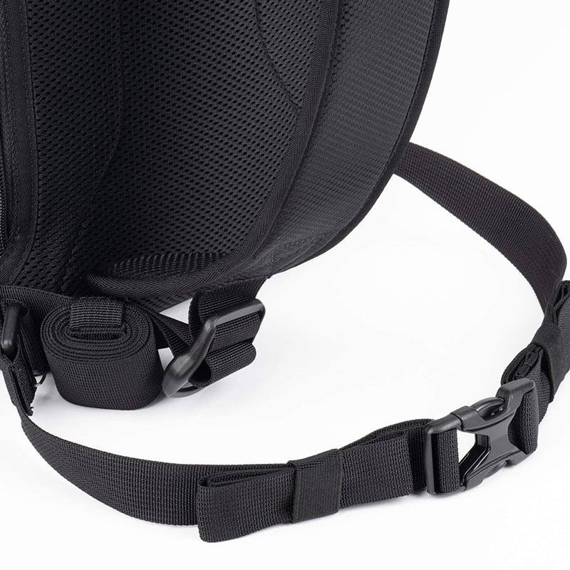 - Sling bag shoulder strap with optional tuck-away stabilizer belt
