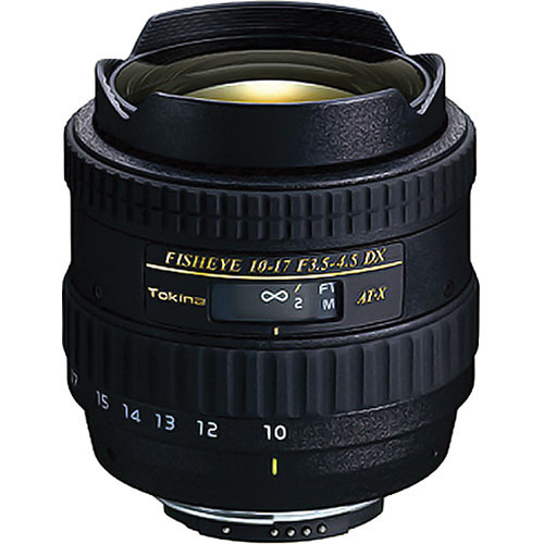 The Tokina Fisheye 10-17mm f/3.5-4.5 AT-X 107 DX Lens was designed exclusively for use with digital SLR cameras with a DX-sized sensor, and combines "full-frame fisheye" (180° diagonal angle of view at a focal length of 10mm) to super wide-angle performance in a single unit.