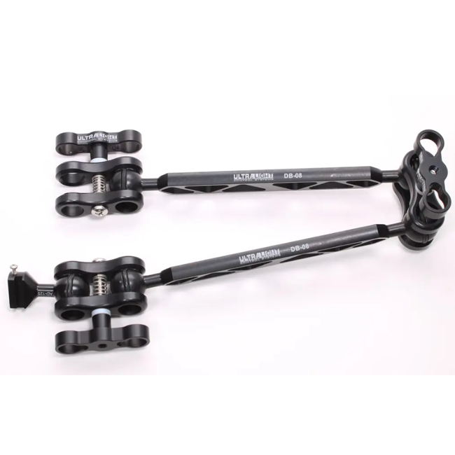 The Ultralight 8" Double Arm Kit (ULCS-UAK-SLCIK-08) allows you to attach your Ikelite strobes to your underwater camera rig. In addition, it provides the capability to extend using two (2) 8" double ball arm and position the strobe to get that perfect lighting. It is constructed from aircraft-grade aluminum with type III anodizing to provide durability.