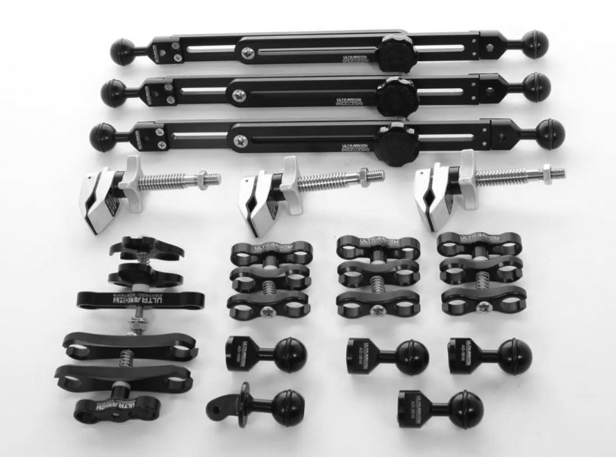 - Includes one AD-GO GoPro mount, one AC-CSLSK2 clamp, one AD-1420 ball mount, one AC-TRI clamp, three DB-EXT legs, three AC-CSSK2 clamps, three AD-3816 ball mounts, and three CARD-SMMC Cardellini clamps.