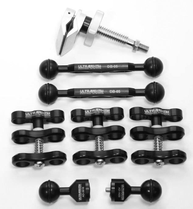 - Includes one CARD-MMC Cardellini clamp, one AD-3816 ball adapter, one AD-1420-2s ball mount, three AC-CSF clamps, and two DB-05 arms.