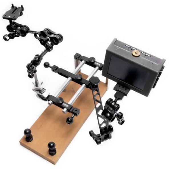 The Ultralight Cinerail C-15-RB is a 15mm rod clamp with 60mm spacing, ten (10) 1/4"-20 mounting holes and large knobs.