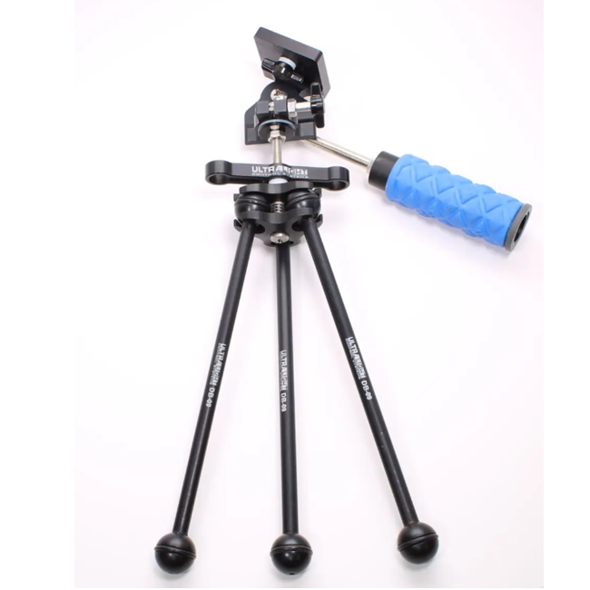 The Ultralight Medium Pan & Tilt Tripod Kit (ULCS-TPK-LPT-09) provides stability when shooting. It is designed to be compact and easy to position. The tripod kit allows you to pan and tilt the camera. It is constructed from aircraft-grade aluminum with type III anodizing to provide durability.