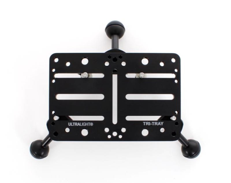 - The wide, stable footprint of the Tri-Tray provides a solid base for nearly any small to large underwater camera housing.