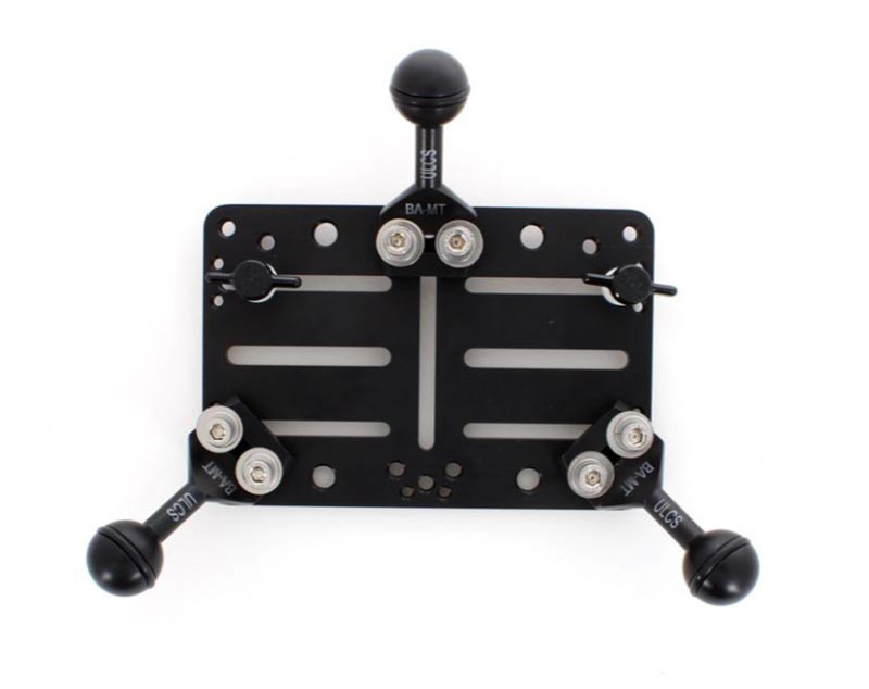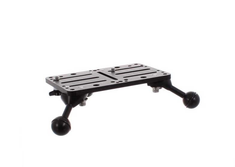 Built for versatility, it includes three integrated 1" ball mounts for attaching arms, clamps, strobes, and other accessories, making it ideal for macro and close-focus underwater imaging. The low-profile 2" height improves balance and positioning, helping divers achieve smoother footage and sharper stills in current or surge.