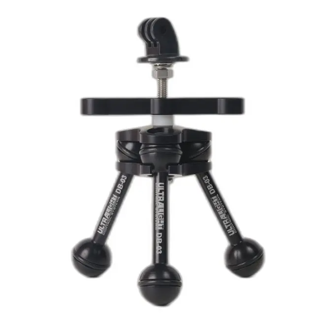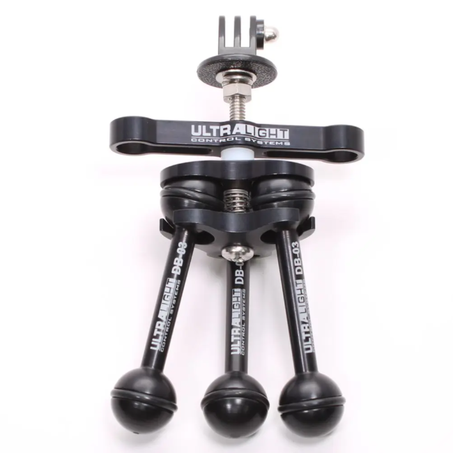 The Ultralight Small GoPro Tripod (ULCS-TPK-SGP-03) provides stability when shooting. It is designed to be small, compact and easy to position. It is constructed from aircraft-grade aluminum with type III anodizing to provide durability.