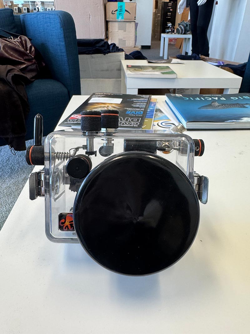 Circuitry built into this housing allows the camera to communicate directly with compatible underwater strobes (see Strobe Compatibility section below). When connected via this circuitry, the camera learns that an external flash is attached and is able to more accurately adjust exposure by knowing this. The camera's flash will not fire, eliminating the shutter lag associated with waiting for the camera's flash to recycle.