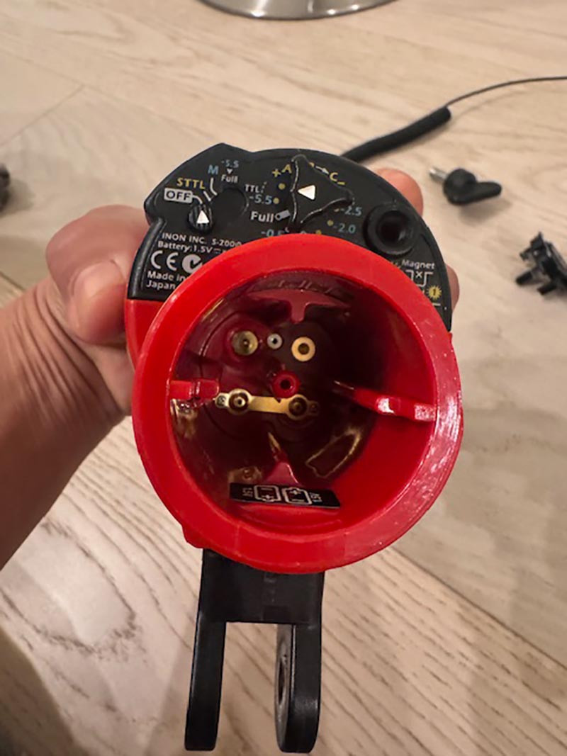 The INON S-220 Underwater Strobe can be used with a variety of ball adapters, such as the "Z Adapter MV" and "Direct Base â…¢". These ball adapters are located forward close to the light-emitting surface, instead of rearward in the previous models. This allows for more flexible lighting, as the optical cable does not interfere with the beam angle.