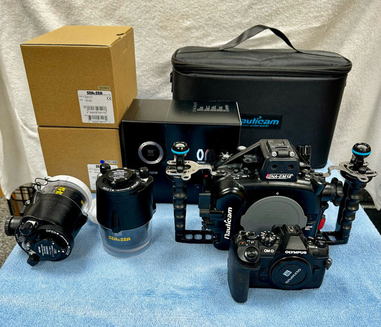 USED: Nauticam Olympus OM-D E-M1 Mark II Underwater Housing and Sea & Sea YS-D2 Strobes