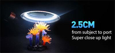The Weefine Ring Light 3000 CCW is a state-of-the-art lighting solution that combines functionality with user-friendly design. This ring light packs a punch! With a maximum output of 3000 lumens in strobe mode and 1800 lumens in continuous mode, the Weefine Ring Light 3000 CCW provides ample light to illuminate your subjects, even in murky water or at greater depths. The new innovation in the CCW Ring Light is the Super Close Up light unit, allowing the subject to be as close as 25mm from the front of the port, compensating for those areas closer to the front of the port that conventional ring lights are not capable of doing. The Super CLose Up light has a 1000lm output with a 5000K color temperature and a RA Index of 95, providing a super consistent and gentle light for those super macro shots.